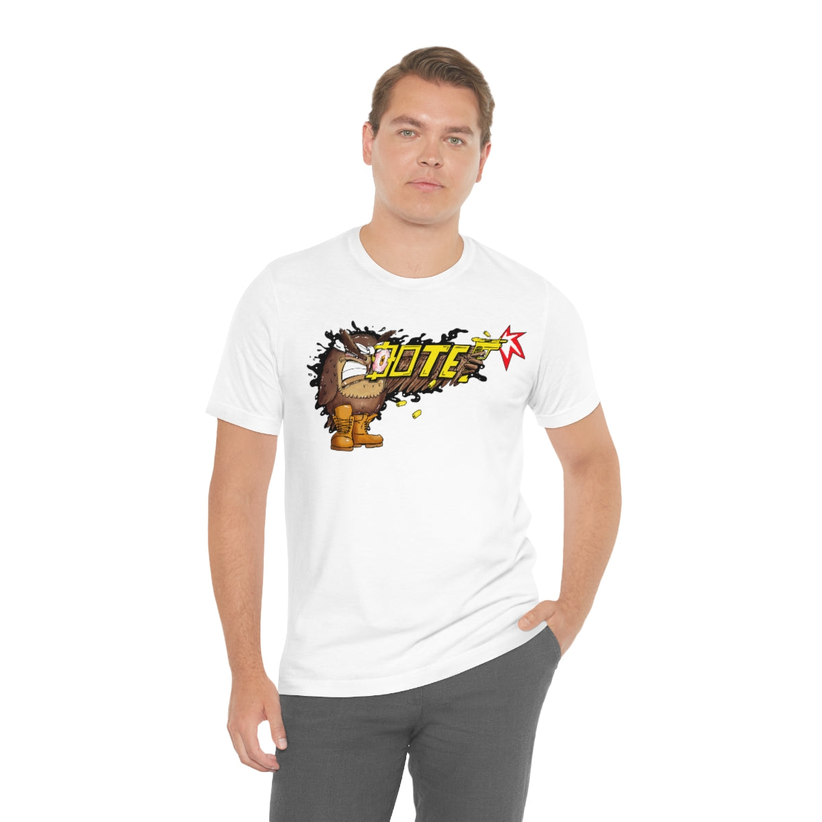 This classic unisex jersey short sleeve tee fits like a well-loved favorite. Soft cotton and quality print make users fall in love with it over and over again. These t-shirts have-ribbed knit collars to bolster shaping. The shoulders have taping for better fit over time. Dual side seams hold the garment's shape for longer.