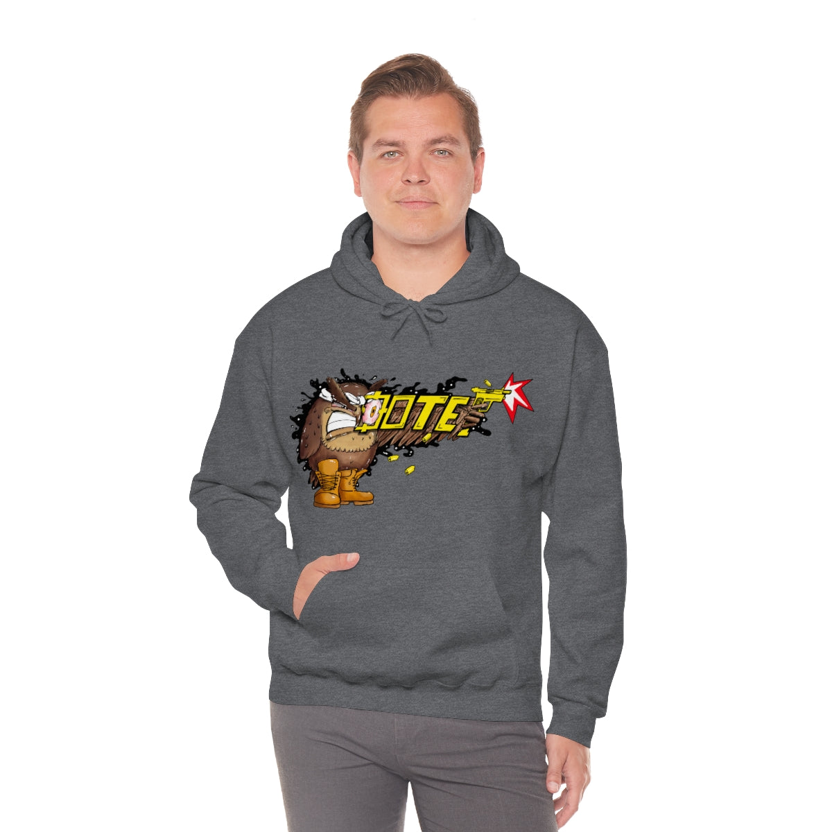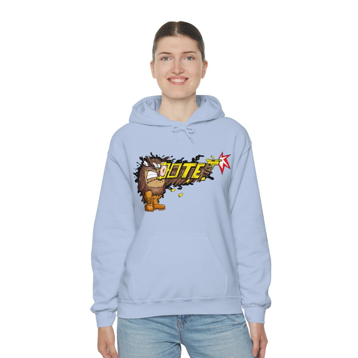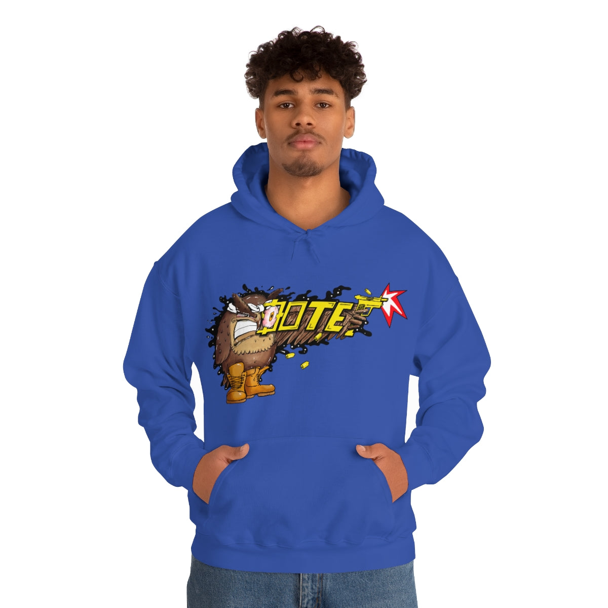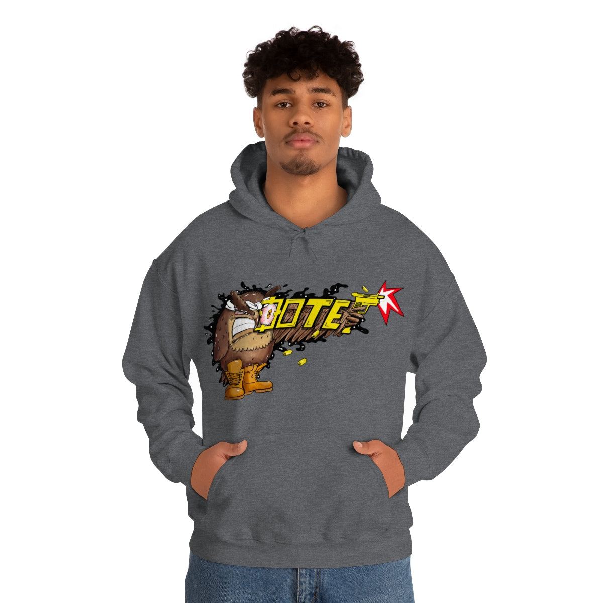 This unisex heavy blend hooded sweatshirt is relaxation itself. Made with a thick blend of cotton and polyester, it feels plush, soft and warm, a perfect choice for any cold day. In the front, the spacious kangaroo pocket adds daily practicality while the hood's drawstring is the same color as the base sweater for extra style points.