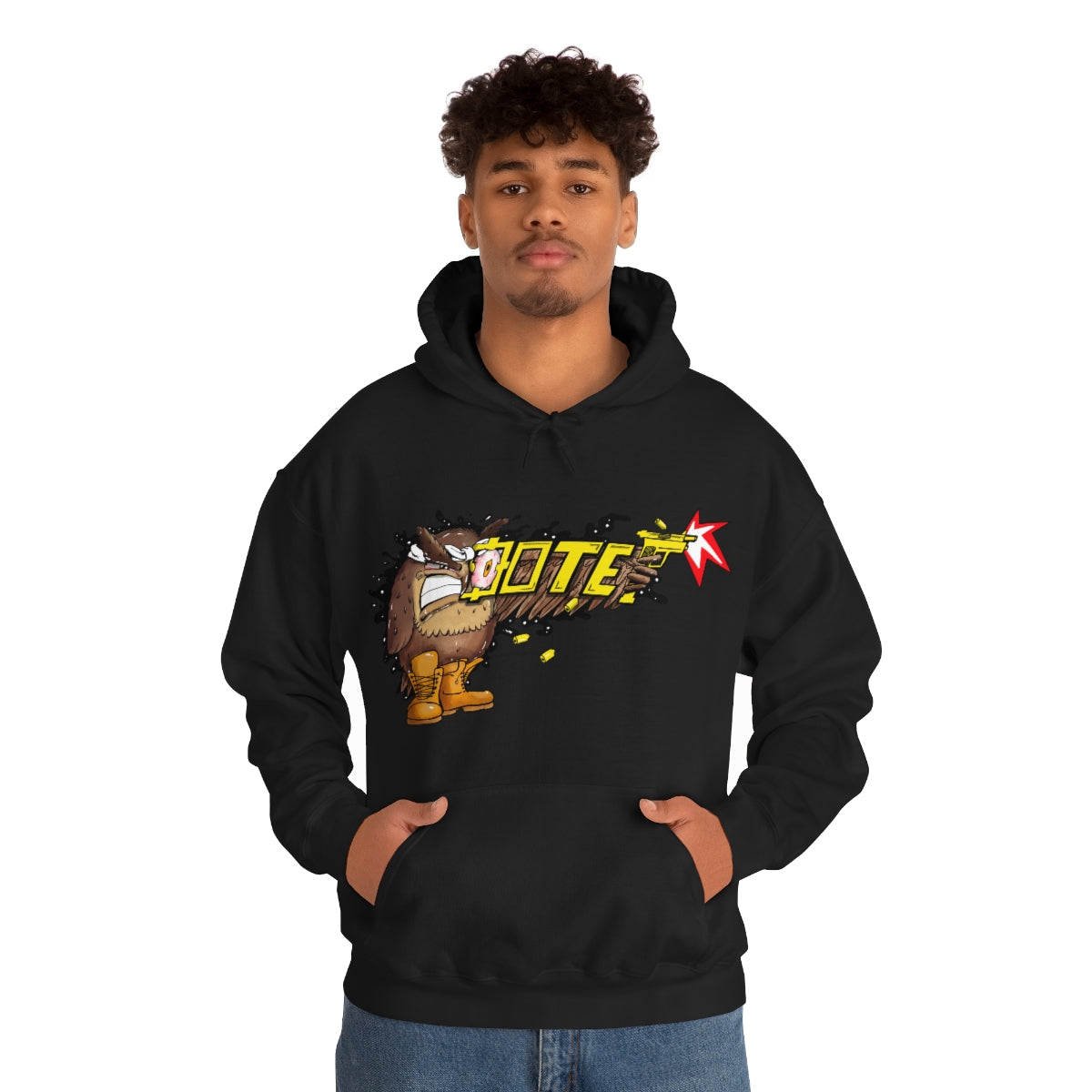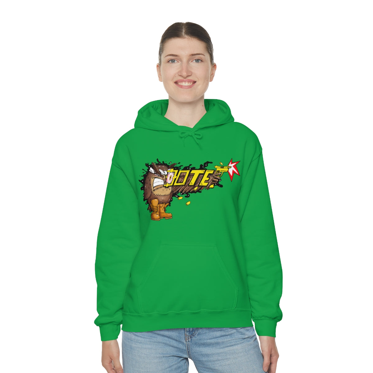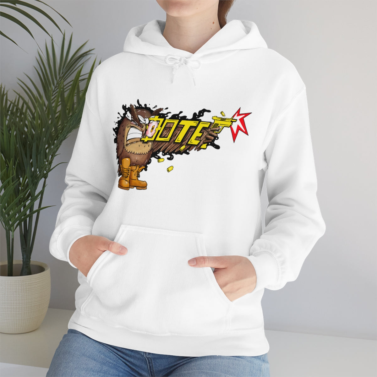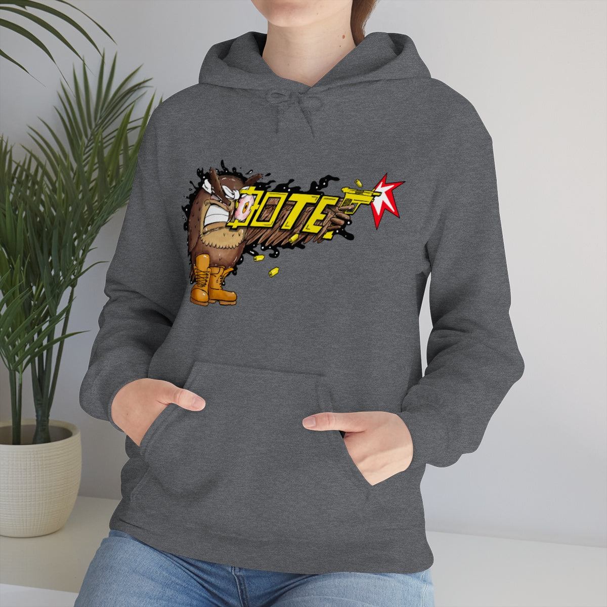 This unisex heavy blend hooded sweatshirt is relaxation itself. Made with a thick blend of cotton and polyester, it feels plush, soft and warm, a perfect choice for any cold day. In the front, the spacious kangaroo pocket adds daily practicality while the hood's drawstring is the same color as the base sweater for extra style points.